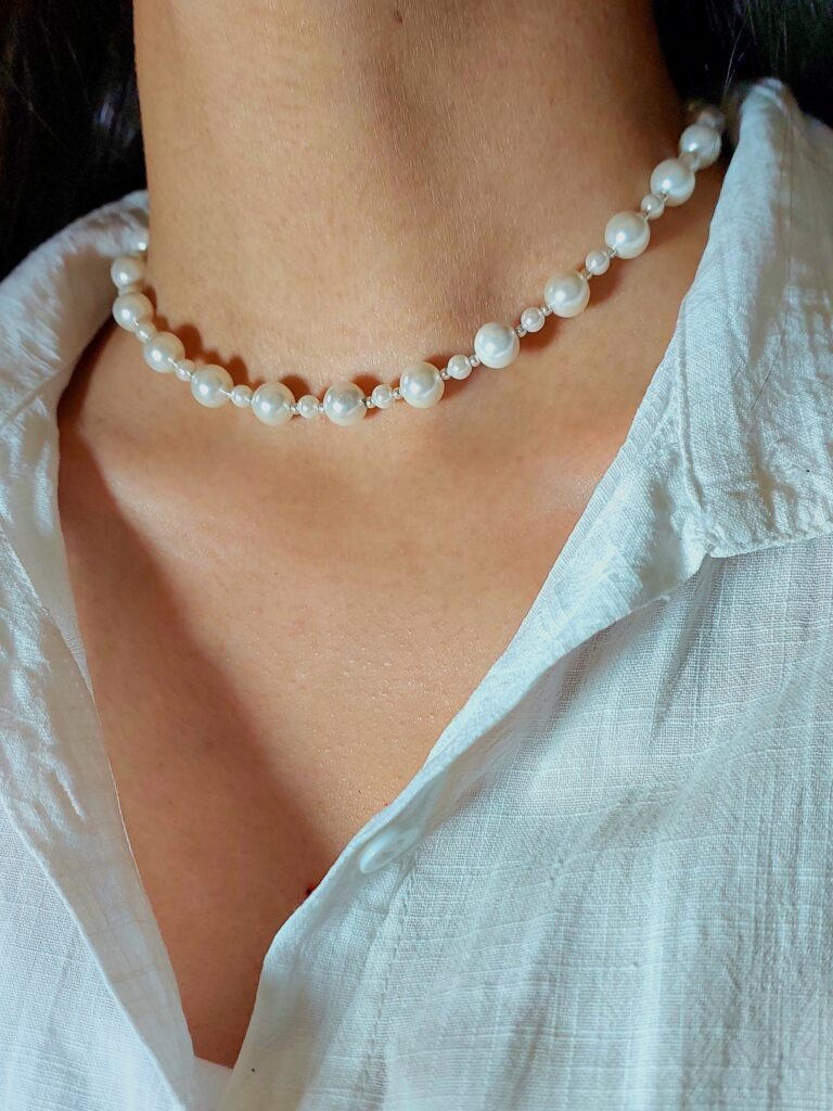 395,000 تومانگردنبند مروارید پرورشی نقره